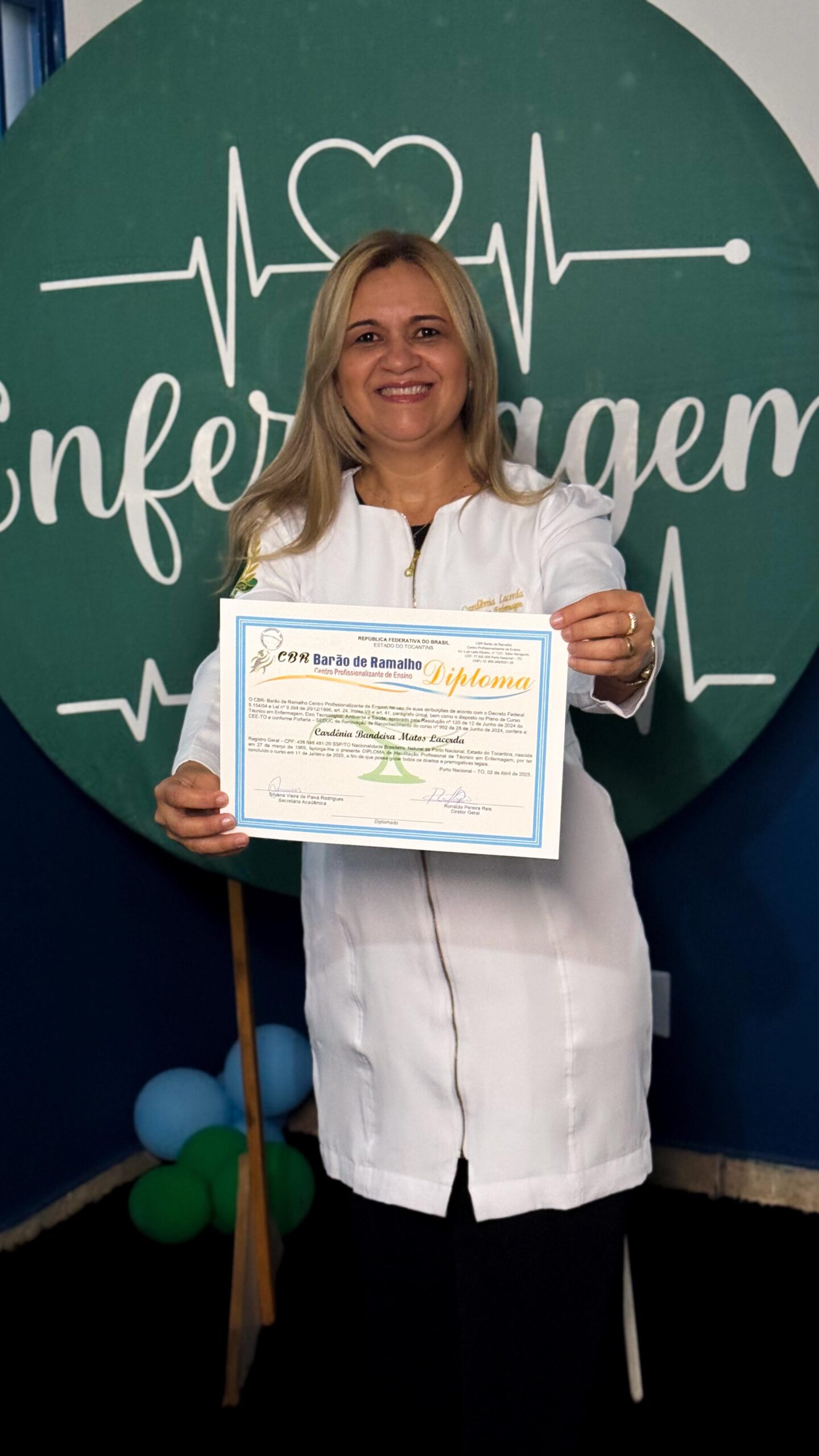 Após 30 anos acalentando o desejo de estudar TEC. em Enfermagem, ela teve coragem, deu o primeiro passo e percorreu seu caminho com determinação. Hoje, está com o diploma em mãos e o coração cheio de orgulho.